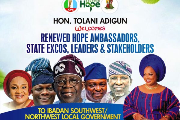 Hon. Tolani Adigun Appreciates APC Leaders, Stakeholders After Successful Renewed Hope Rally in Ibadan Southwest/Northwest, Northeast/Southeast Federal Constituencies