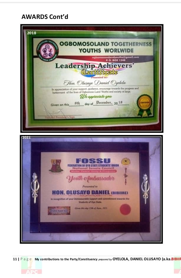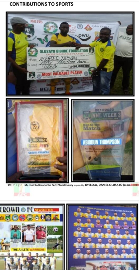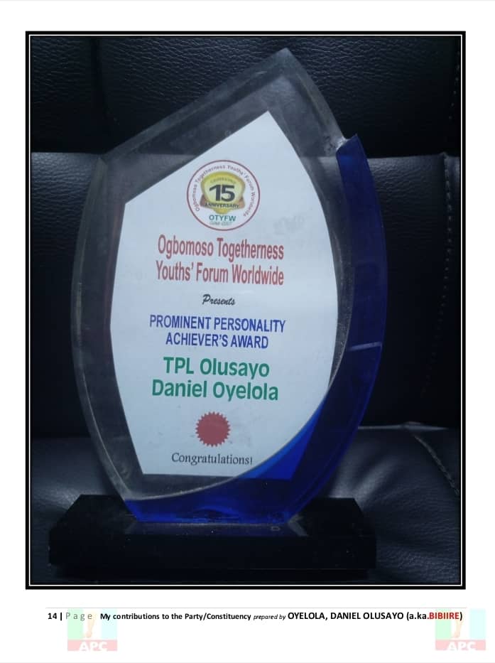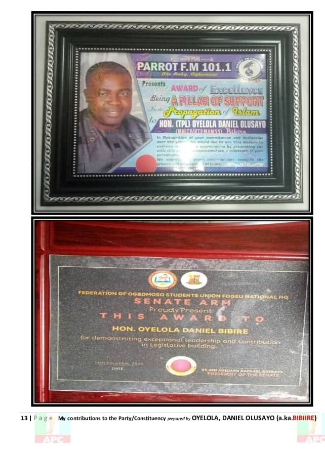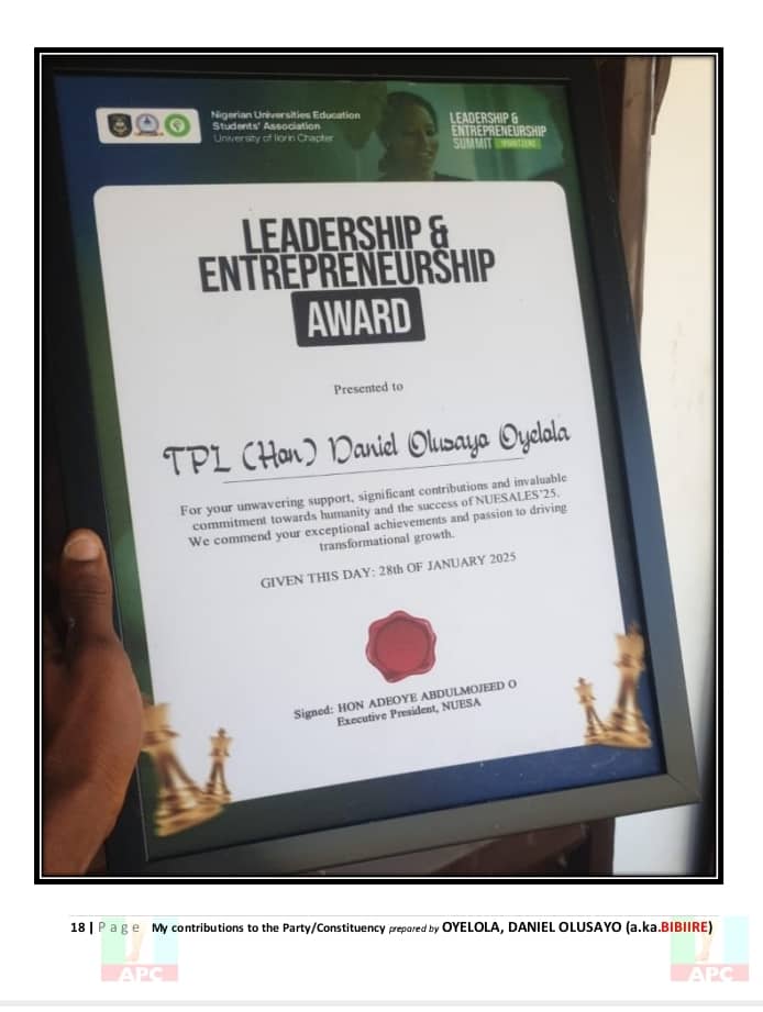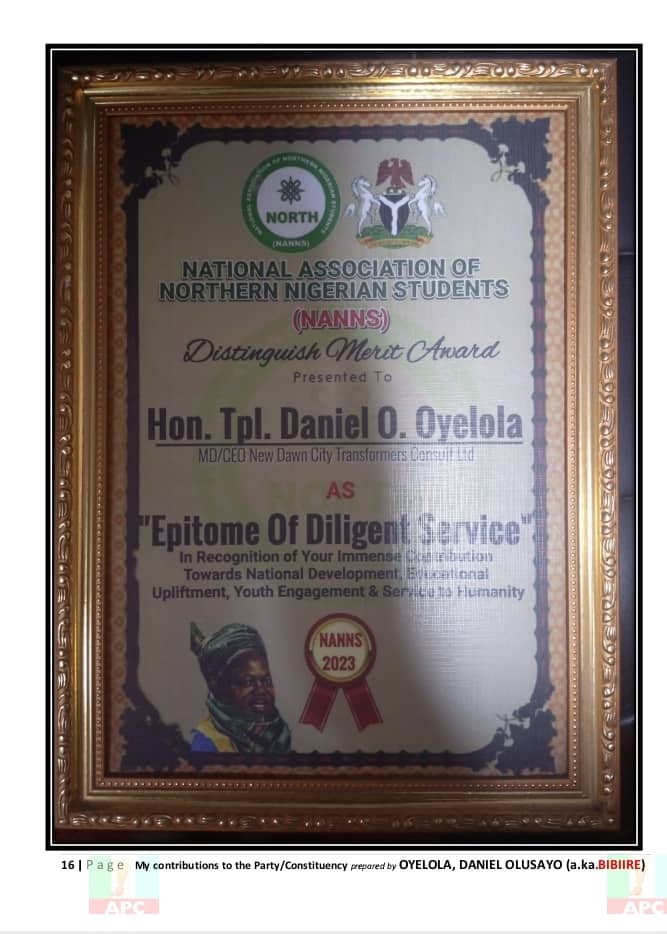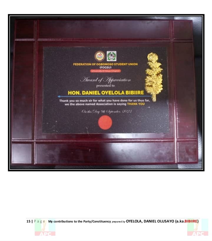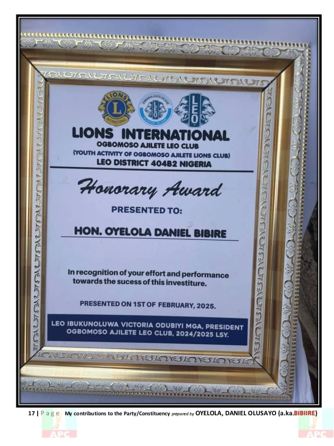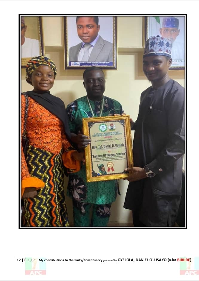 Each of these efforts — from the classroom to the campaign trail — paints the picture of a man deeply rooted in his community and dedicated to its progress. Hon. Daniel Olusayo Oyelola, Bibiire, is not just a politician; he is a development-minded leader whose 20 years of unwavering service continues to speak volumes.