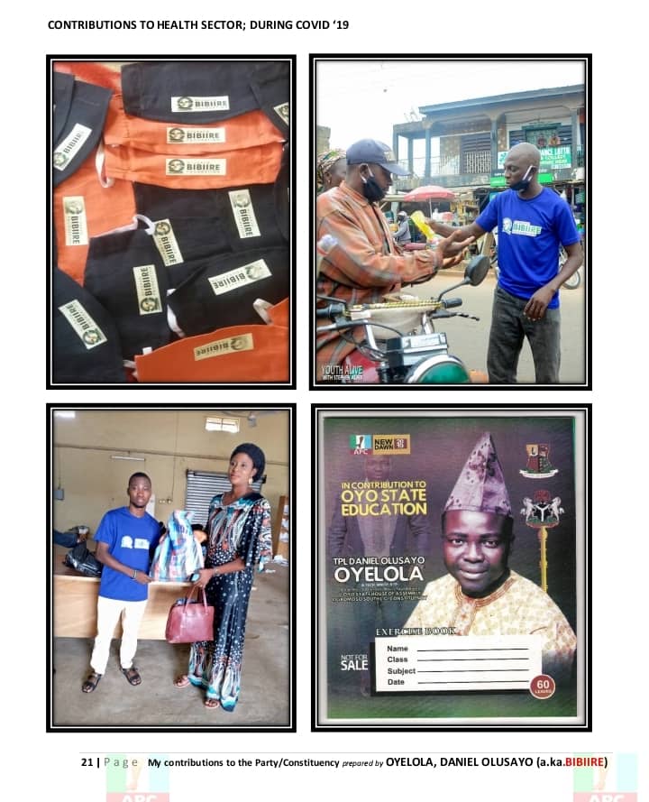 In times of crisis, such as the COVID-19 pandemic, Bibiire stood with his constituents. He organized sensitization campaigns and distributed relief materials including hand sanitizers, face masks, and food items to families across Ogbomoso South. He also used various radio platforms to promote the party’s image and message, helping to keep the APC brand visible and credible within the region.