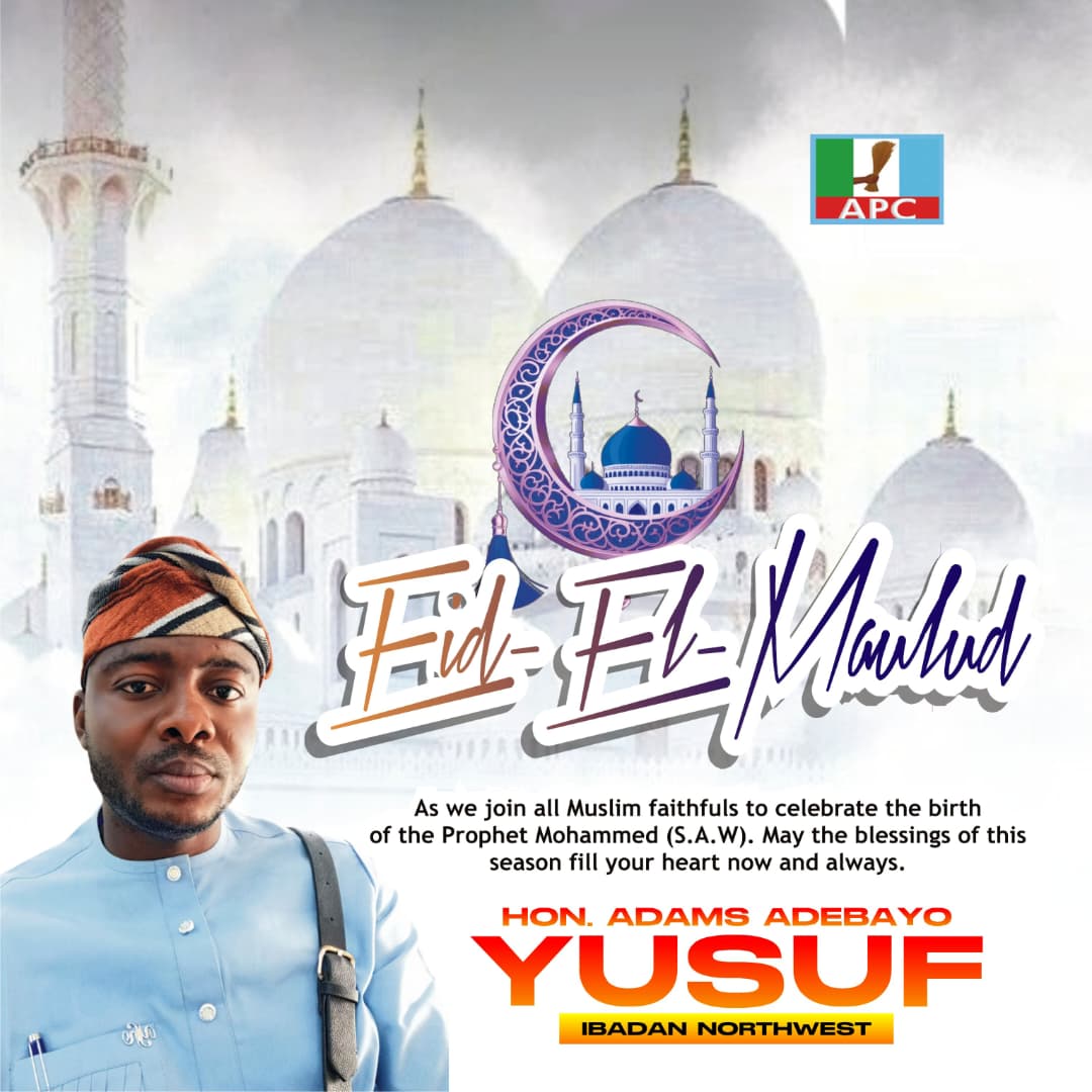 A prominent member of the All Progressives Congress (APC) in Ibadan North West, Hon. Adams, has joined Muslim faithful across Nigeria in celebrating this year’s Eid-El-Maulud, describing it as a moment of reflection, peace, and renewed faith.