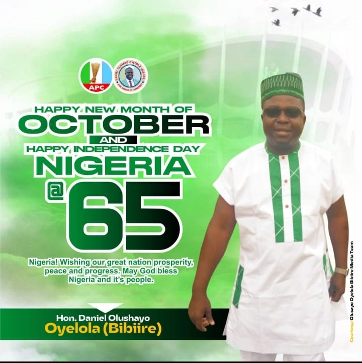 The Assembly Member Hopeful for Ogbomoso South, Hon. Olusayo Bibiire, has joined millions of Nigerians in celebrating the country’s 65th Independence Day anniversary.