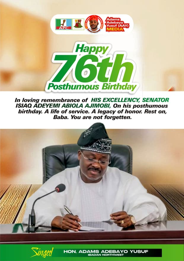 Today marks what would have been the 76th birthday of our revered leader, Senator Abiola Ajimobi, a statesman whose legacy continues to resonate across Oyo State and beyond. Though he is no longer with us, his vision, courage, and uncommon commitment to good governance remain enduring pillars upon which modern Oyo State stands.