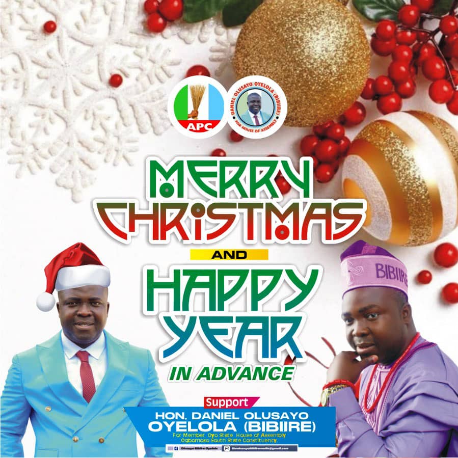 Ogbomoso South House of Assembly hopeful, Hon. Olusayo Daniel Oyelola, popularly known as Bibiire, has extended warm Christmas greetings to the good people of Ogbomoso South Local Government, urging residents to embrace the values of love, peace, and unity that define the season.